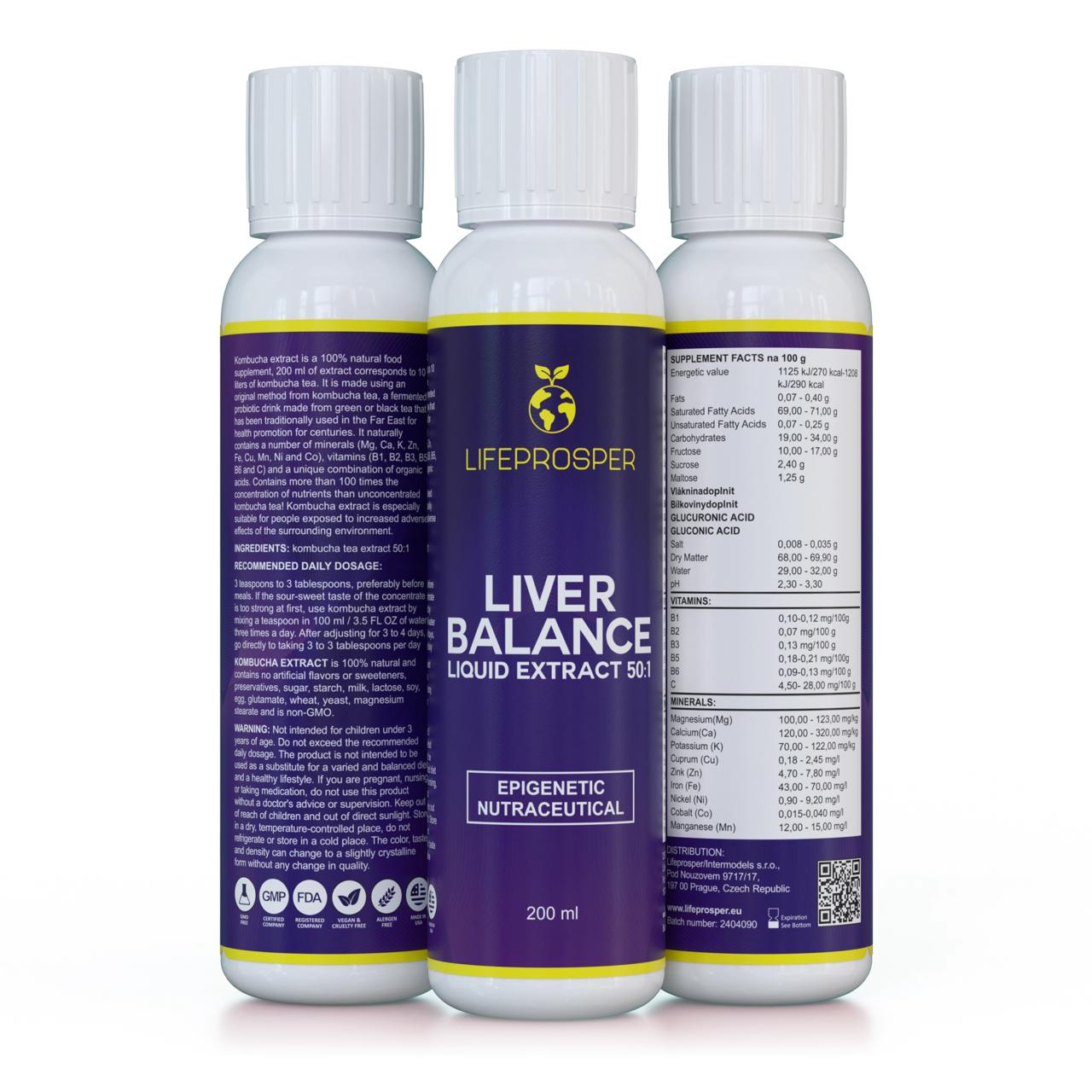 The kombucha extract is a 100% natural dietary supplement. 200 ml of the extract corresponds to 10 liters of kombucha tea. It is produced using an original method from kombucha tea, a fermented probiotic beverage made from green or black tea, traditionally used in the Far East for centuries to support health. It naturally contains a range of minerals (Mg, Ca, K, Zn, Fe, Cu, Mn, Ni, and Co), vitamins (B1, B2, B3, B5, B6, and C), and a unique combination of organic acids. The extract contains more than 100 times higher nutrient concentration than non-concentrated kombucha tea! The kombucha extract is especially suitable for people exposed to increased adverse environmental effects.